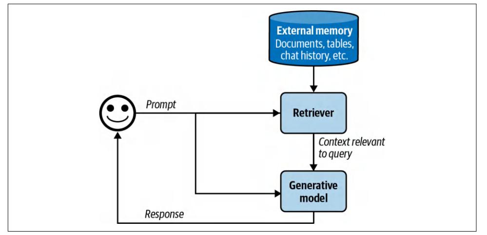Figure 6-1. The retrieve-then-generate pattern. The model was referred to as the docu‐ ment reader.