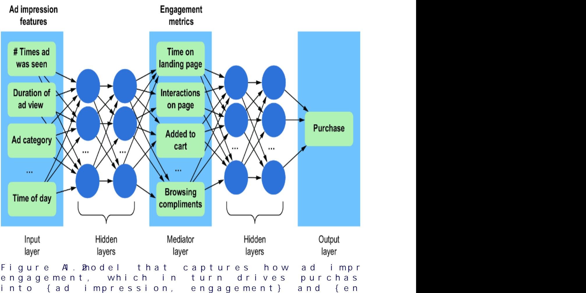 - Estimating average treatment e ects(ATEs)—Suppose the algorithm that recommends content to the user is a cause of the churn; a better choice of algorithm might reduce churn, but by how much? The task of quantifying how much, on average, a cause drives an e ect is the ATE estimation . For example, some users could be exposed to a new version of the algorithm, and you could measur e how much this a ects churn, relative to the baseline algorithm.