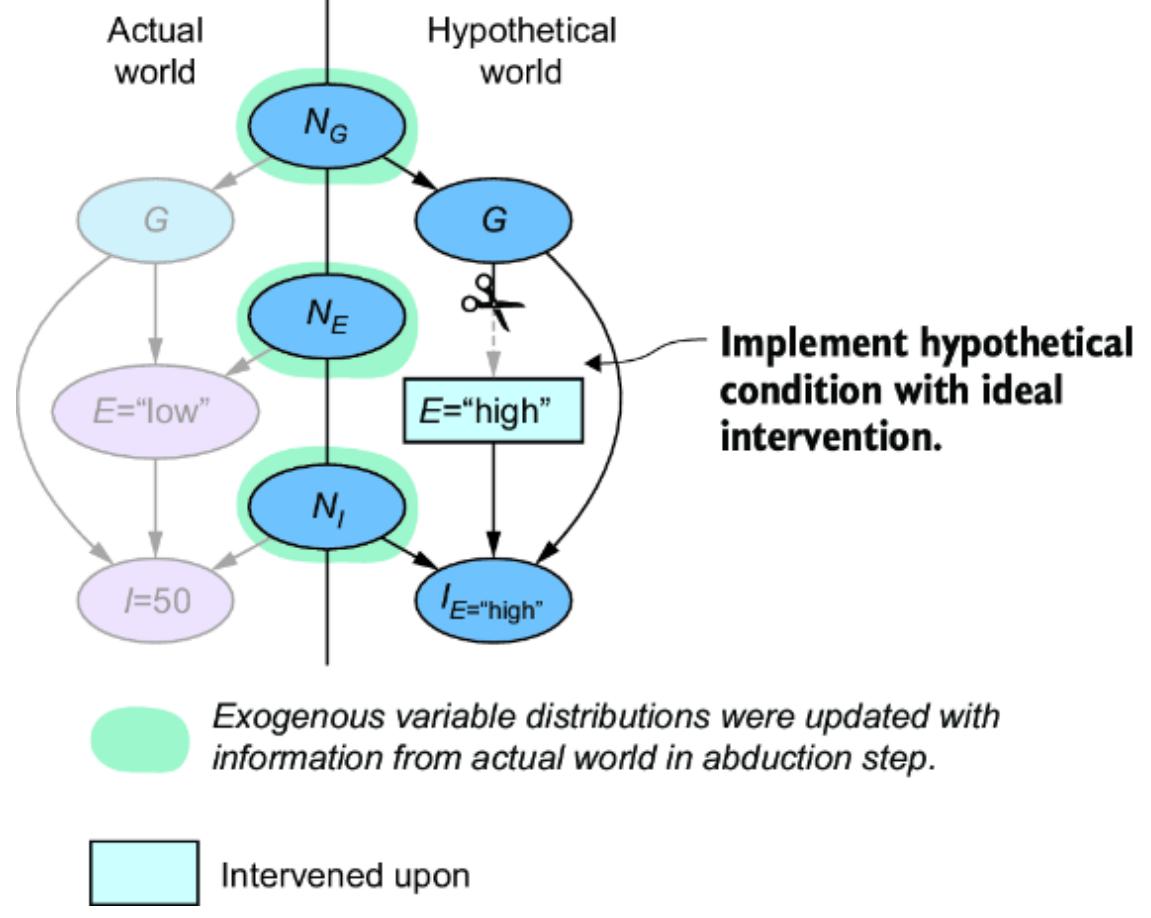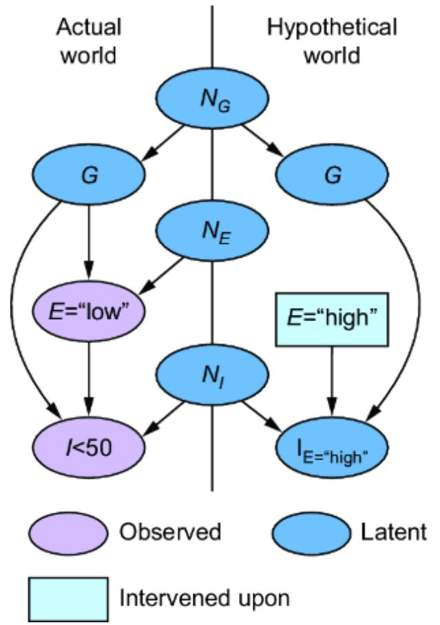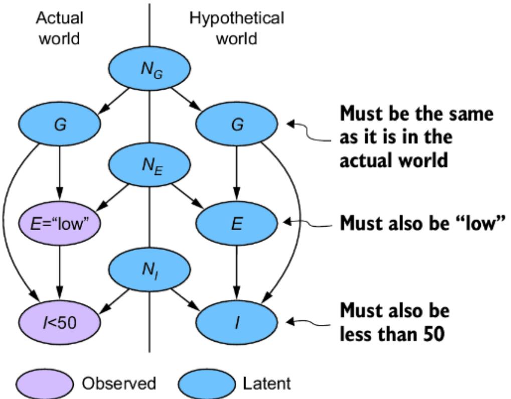 Next, we’ll apply the intervention and run inference to sample from P (IE=0).