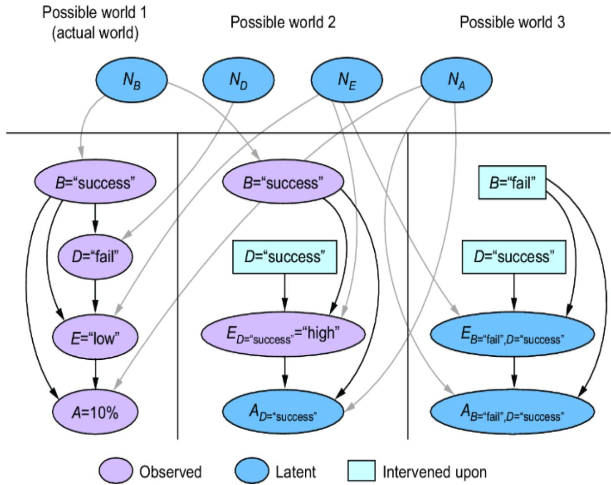 - Interventional or counterfactual queries fall on their corresponding level of the hierarchy.