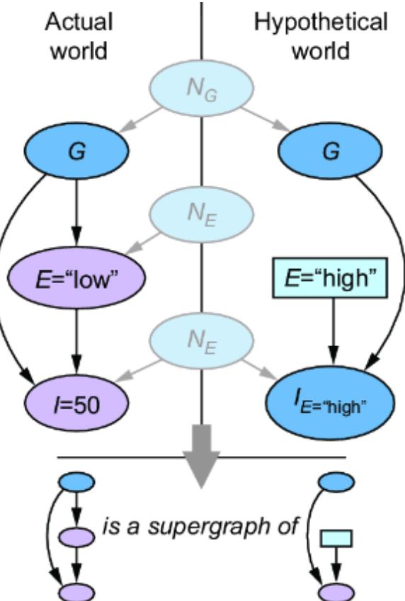 - A counterfactual graph is a DAG that includes variables across counterfactual worlds on one graph. Unlike the parallel world graph, it admits d-separation. We derive the counterfactual graph from the parallel world graph and the target query.