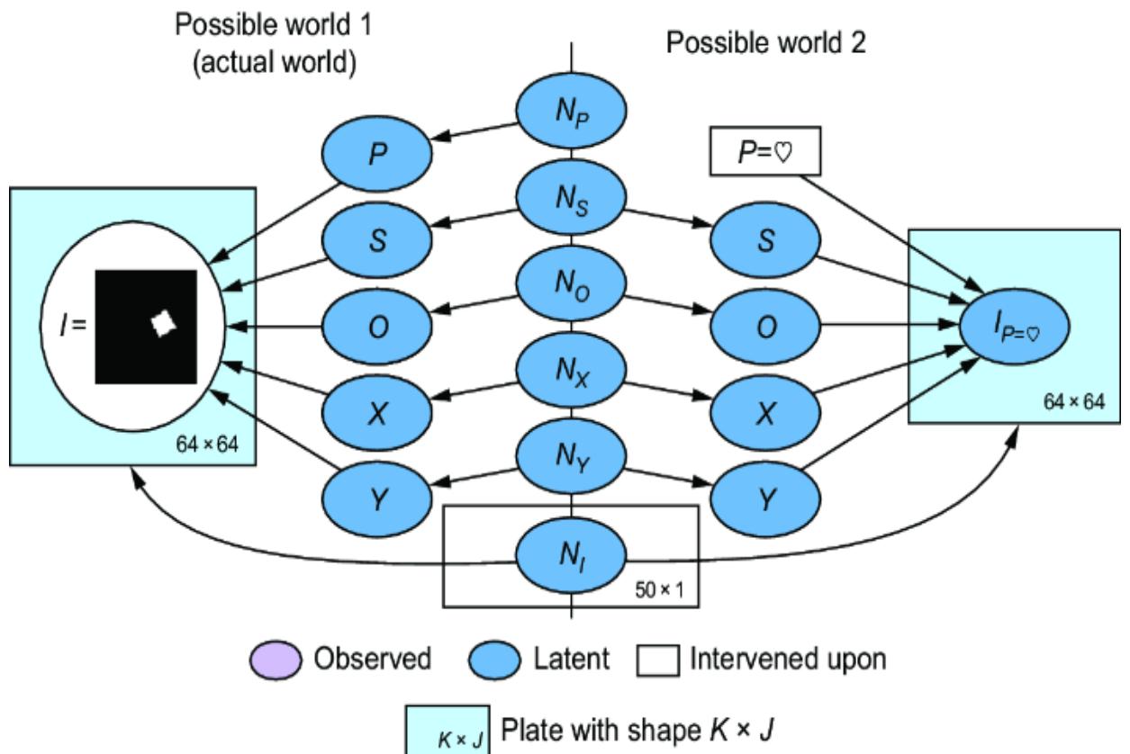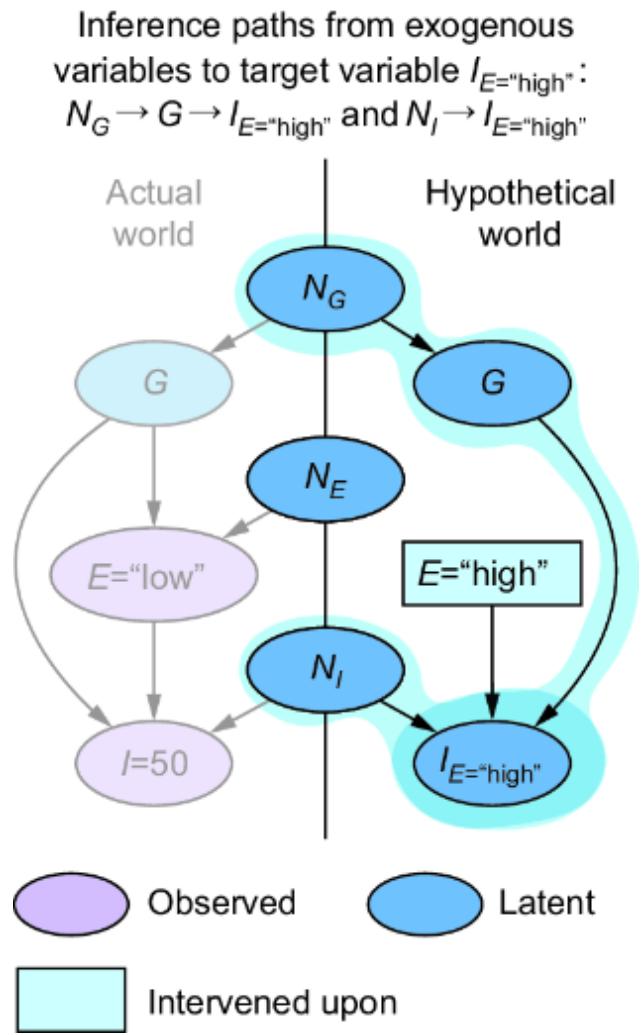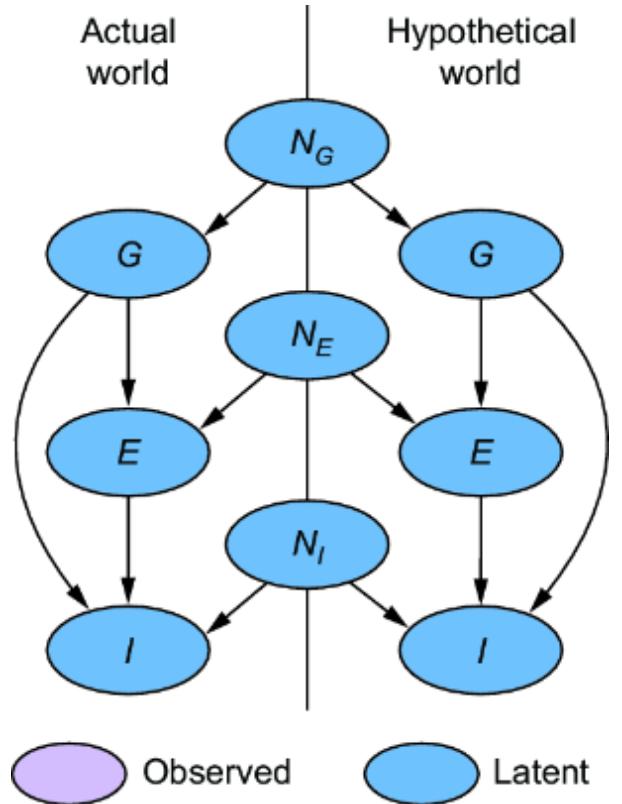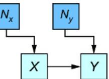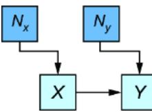 - A set of exogenous variables (e.g., Nx and Ny)—These variables stand in for unmodeled causes of the endogenous variables. In our formulation, each endogenous variable has one corresponding latent exogenous variable.