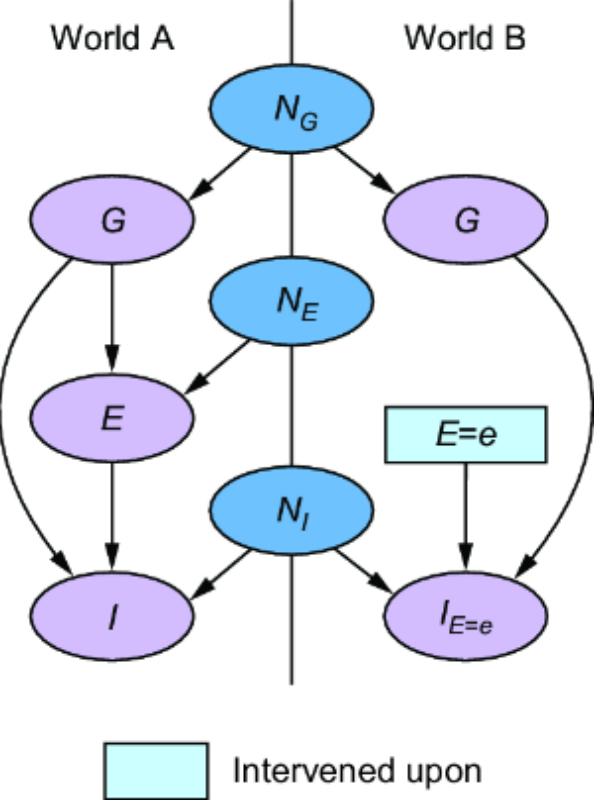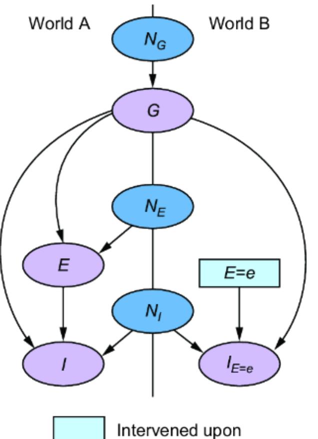 - Single world intervention graphs (SWIGs) provide an intuitive alternative to counterfactual identification with do-calculus and counterfactual graphs. They are constructed by applying a node-splitting operation to the original causal DAG. SWIGs use a ૿single-world assumption, which assumes it’s possible to know a variable’s natural value while also intervening on it before it realizes that value without any side-effects that would affect that natural value.