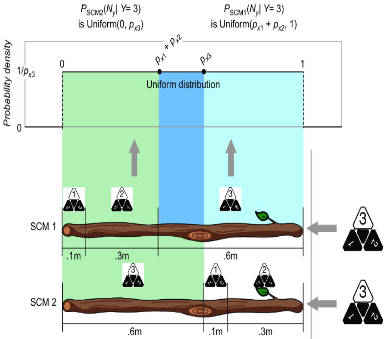#4 window_breaks is an endogenous variable. The assignment function is lambda strength_of_impact, window_strength: strength_of_impact > window_strength. #5 Each exogenous variable has a Uniform(0, 1) distribution.