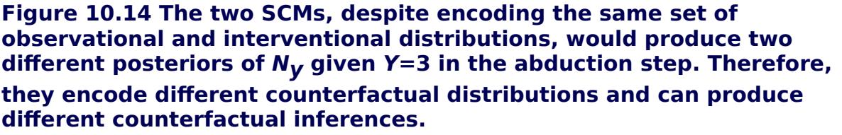 With this introduction of new exogenous variables Nx and Ny, some linear functions fx and fy, and a reparameterization, we converted the CGM to an SCM that encodes the same distribution P (X, Y ). Next, let’s look more closely at the elements we introduced.