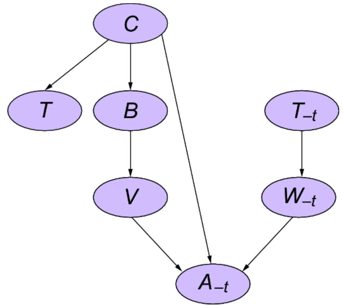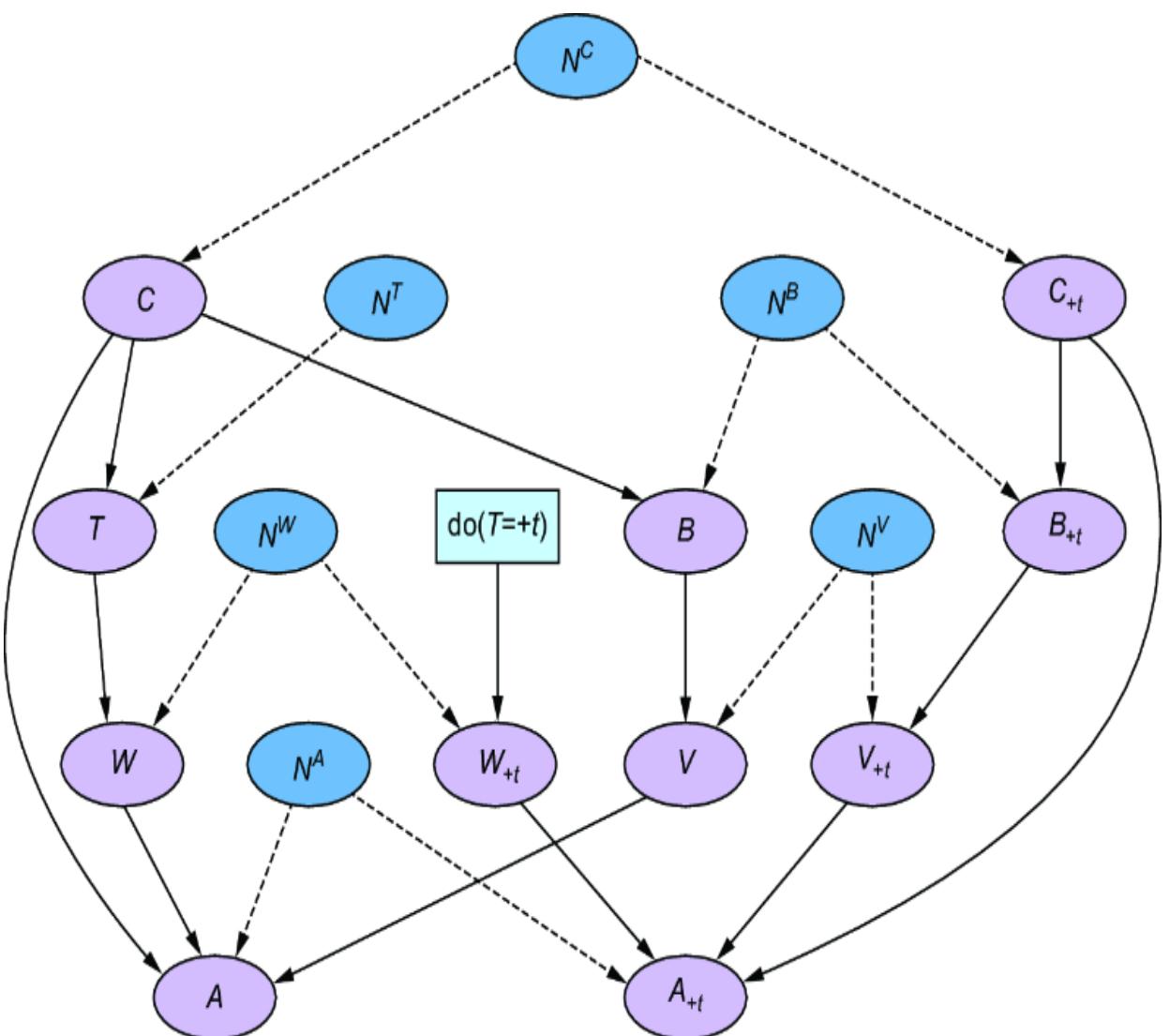 In our formulation, we’ll assume exogenous variables have no parents and have no edges between one another. In other words, they are root nodes in the graph, and they are independent relative to other exogenous variables. Further, we’ll treat the exogenous variables as latent variables.