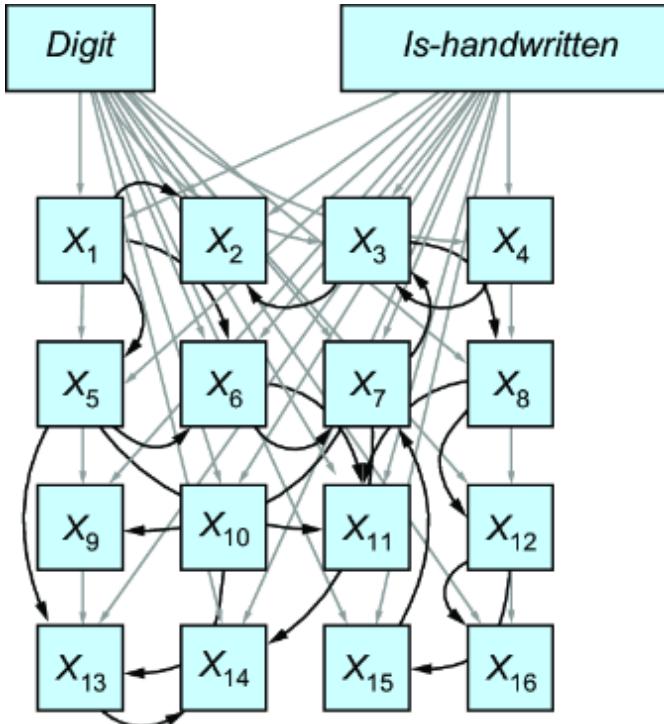deep causal graphical model of MNIST and TMNIST, 2nd, 3rd