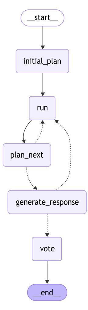 We saw an example of implementing a consensus mechanism based on majority voting in Chapter 3. You can wrap it as a separate LangGraph node, and there are alternative ways of coming to a consensus across multiple agents: