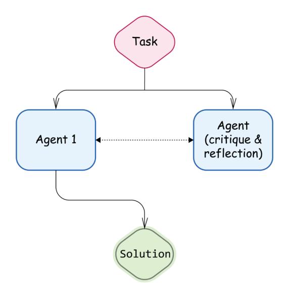 Agents can work collaboratively on a task by providing critique and reflection. There are multiple reflection patterns starting from self-reflection, when the agent analyzes its own steps and identifies areas for improvements (but as mentioned above, you might initiate the reflecting agent with a slightly different system prompt); cross-reflection, when you use another agent (for example, using another foundational model); or even reflection, which includes Human-in-the-Loop (HIL) on critical checkpoints (we’ll see in the next section how to build adaptive systems of this kind).