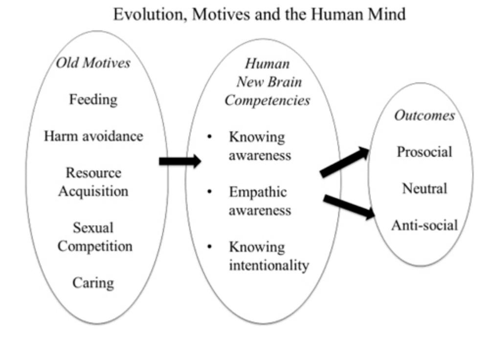 Humanity is struggling to find ways to balance our minds and create schools, workplaces, cultures and societies that enable us to balance our minds and where wealth is created for human benefit. Wealth should be created to improve humanity; our time and our efforts are not to create Ferraris for the rich but solar panels for the poor. We are struggling to know how to create the social conditions that will enable us to stimulate cooperative sharing psychology. Be it with use of taxation or creation of the welfare state, those following selffocused accumulator strategies have done a good job in gaining power and ridiculing such efforts. But the fact is that caring and sharing are not simply moral issues because they are what makes us human. This is easily demonstrated. There is considerable research now that shows that sharing and caring have profound effects on our mental states, a whole range of physiological processes (even genetic expressions), the quality of our social relationships, the goods and services we choose to create, the cultures we choose to build. If you think of humanity as a set of interconnected minds then caring and sharing psychology that flows in that field of shared minds has profound effects on the well-being that flows between all minds. As we begin to understand our minds and the ways in which the content of our minds are full of evolved dispositions, we are but one step away from recognising a need to take more control over how our minds are nourished, educated and asked to operate in different facets of life.