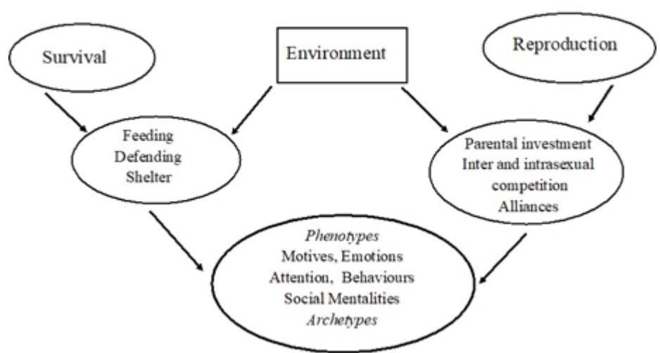 Yet even here, the mechanistic vision and ideals were powerfully set. The ideas that more is better and that suffering comes from faulty mechanisms (the body) to be cured with new inventions (drugs) is still with us. Even Freud’s theories were basically mechanistic, focusing on ‘energies’ dammed and repressed, and he believed that one day neurosis would be understood in terms of its chemical substrates. As we shall see later, the Jungian alternative saw human nature as formed from a collection of archetypal possibilities that are essentially meaning-creating and task-performing devices, orientated to a social life. However, the emergence of a new evolutionary approach to human behaviour would reinvent the concept of archetypes and call them “adaptive strategies”, and this propelled the significance of understanding the evolved mind.