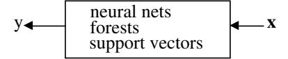 The analysis in this culture considers the inside of the box complex and unknown. Their approach is to find a function \(f(\mathbf{x})\)—an algorithm that operates on \(\mathbf{x}\) to predict the responses \(\mathbf{y}\). Their black box looks like this: