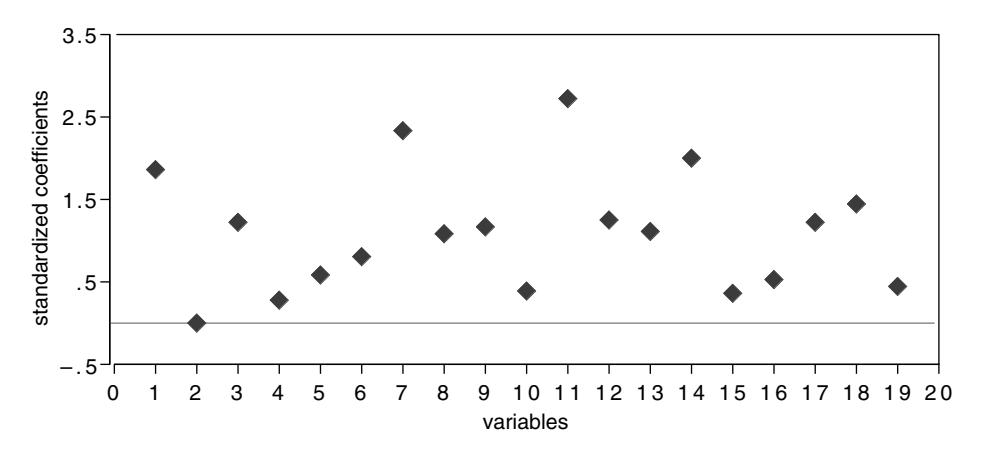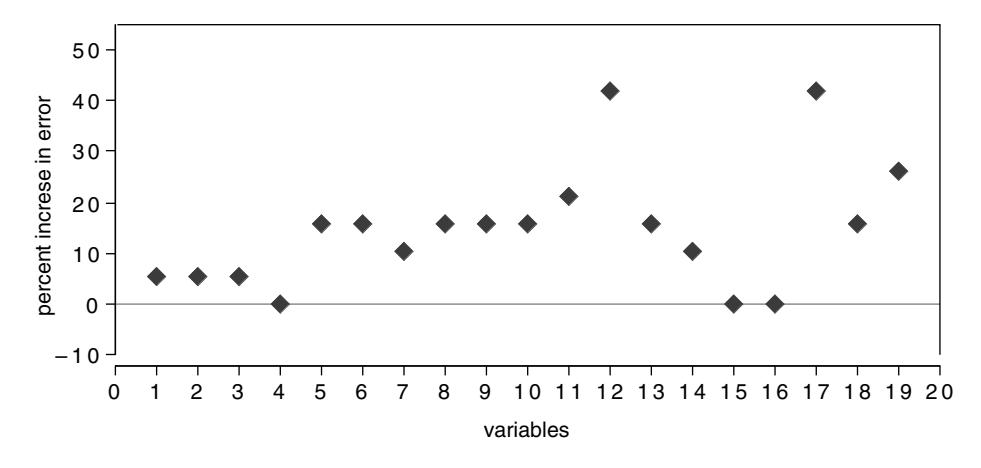Another approach used in linear methods such as logistic regression and survival models is to compare the size of the slope estimate for a variable to its estimated standard error. The larger the ratio, the more “important” the variable. Both of these definitions can lead to erroneous conclusions.