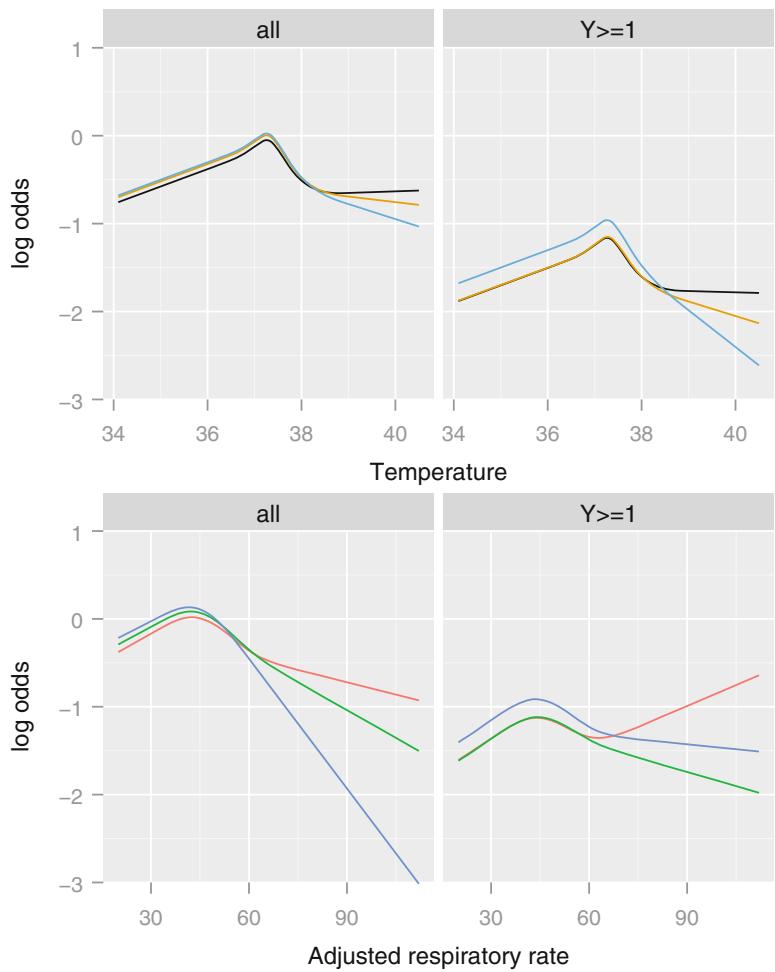 object-oriented program, x, 127, 133 observational study, 3, 58, 230, 400 odds ratio, 222, 224, 318 OLS, see linear model ols, 131, 135, 137, 350, 351, 448, 469, 470 optimism, 109, 111, 114, 391 ordered, 133 ordinal model, 311, 359, 361–363, 370, 371 case study, 327–356,359–387 probit, 364 ordinal response, see response ordinality, see assumptions orm, 131, 135, 319, 362, 363 outlier, 116, 294 overadjustment, 2 overfitting, 72, 109–110