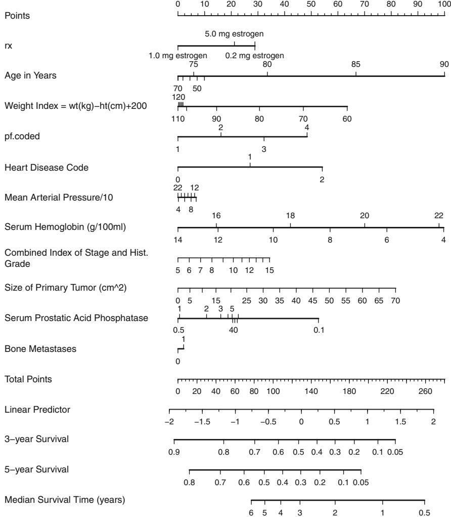 na.action, 131 na.delete, 131, 132 na.detail.response, 131 na.fail, 132 na.fun.response, 131 na.omit, 132 naclus, 47, 142, 302, 458, 461 naplot, 47, 302, 461 naprint, 135 naresid, 132, 135 natural spline, see restricted cubic spline nearest neighbor, 51 Nelson estimator, see survival function, 422 Newlabels, 473 Newton–Raphson algorithm, 193, 195, 196, 209, 231, 426 NHANES, 365 nlme package, 131, 148, 149 noise, 34, 68, 69, 72, 209, 488, 523 nomogram, 104, 268, 310, 318, 353, 514, 531 nomogram, 135, 138, 149, 282, 319, 353, 473, 514 non-proportional hazards, 73, 450, 506