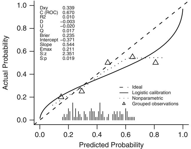 Since there are only two quantities to model and two free parameters, there is no way that this two-sample model can’t fit; the model in this case is essentially fitting two cell proportions. Similarly, if there are g × 1 dummy indicator Xs representing g groups, the ANOVA-type logistic model must always fit.
