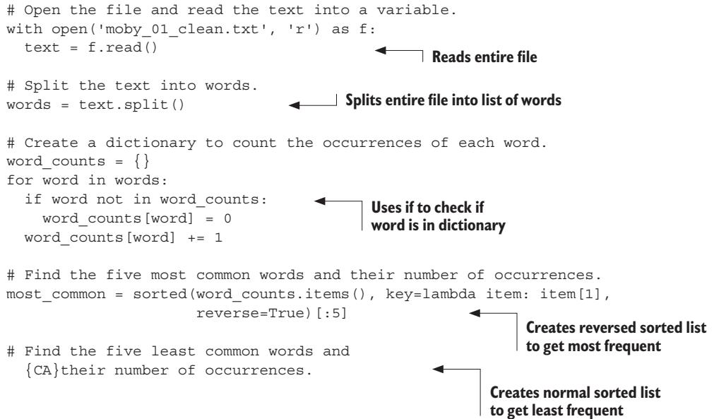 - 4 In the print_common_words and print_least_common_words functions, handle the IndexError that might occur when there are less than n words.