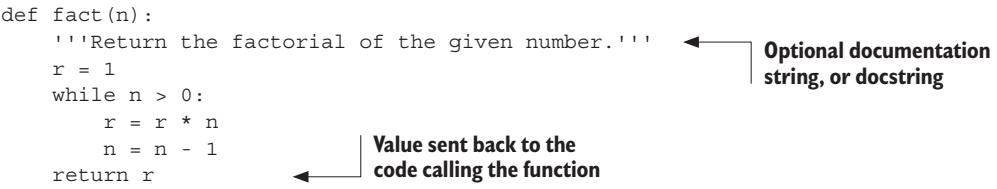 Note that while it’s more explicit and clearer to say r = r * n, it’s also possible and good Pythonic style to use the shorter r *= n form—both are fine in Python.