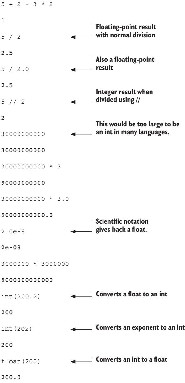 In Python, unlike in many other computer languages, neither a variable type declaration nor an end-of-line delimiter (like a ;) is necessary. The line is ended by the end of the line. Variables are created automatically when they’re first assigned.