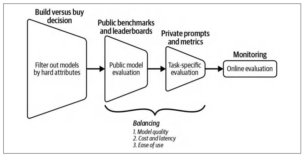 The pros and cons of each approach hopefully can help you decide whether to use a commercial API or to host a model yourself. This decision should significantly nar‐ row your options. Next, you can further refine your selection using publicly available model performance data.